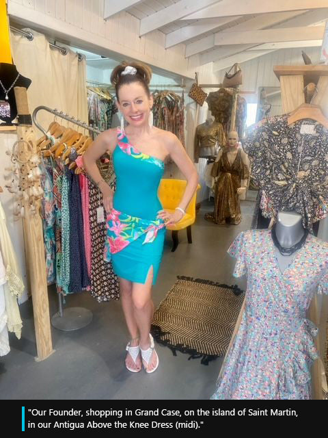 - The Antigua Above The Knee Dress is the epitome of breezy elegance. It features a vibrant pattern reminiscent of Antiguan landscapes, offering a lively twist to your wardrobe. This dress boasts a flattering, slightly raised hemline, perfectly capturing the balmy allure of seaside strolls. With its effortless design and lightweight fabric, it's your go-to choice for sunny days and warm evenings. The Antigua Above The Knee Dress is where comfort meets style, transporting you to a Caribbean paradise with every wear.